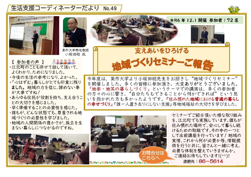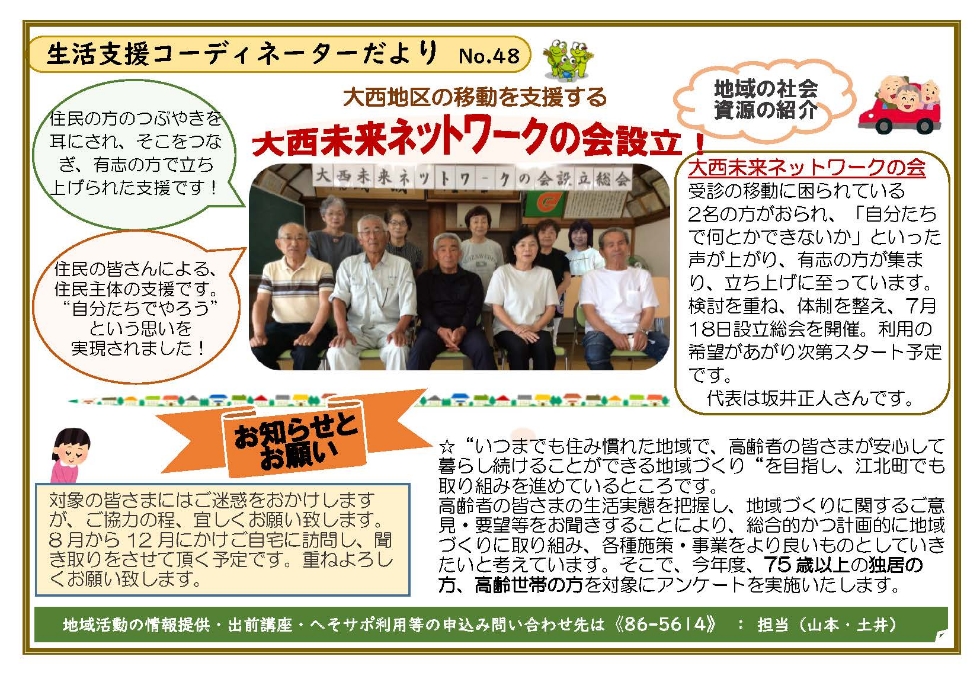 生活支援コーディネーターだよりを発行しました。